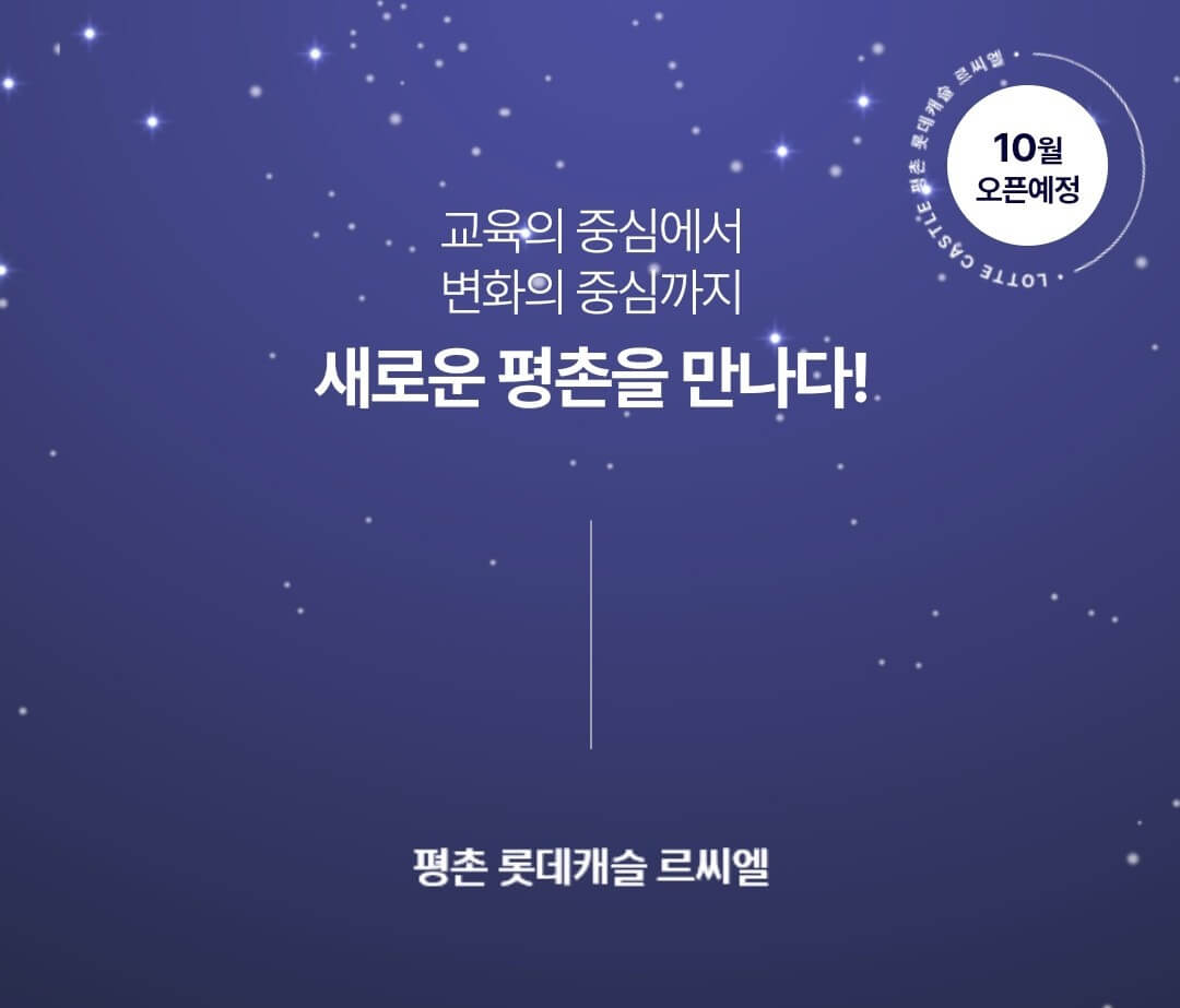 롯데건설이 경기도 안양시 동안구 평촌동 일원에 공급하는 평촌 롯데캐슬 르씨엘 오피스텔이 오는 10월 분양을 시작합니다. 평촌신도시와 인덕원 생활권을 모두 누릴 수 있는 데다 상품성까지 갖춰 그 프리미엄이 더욱 기대됩니다.